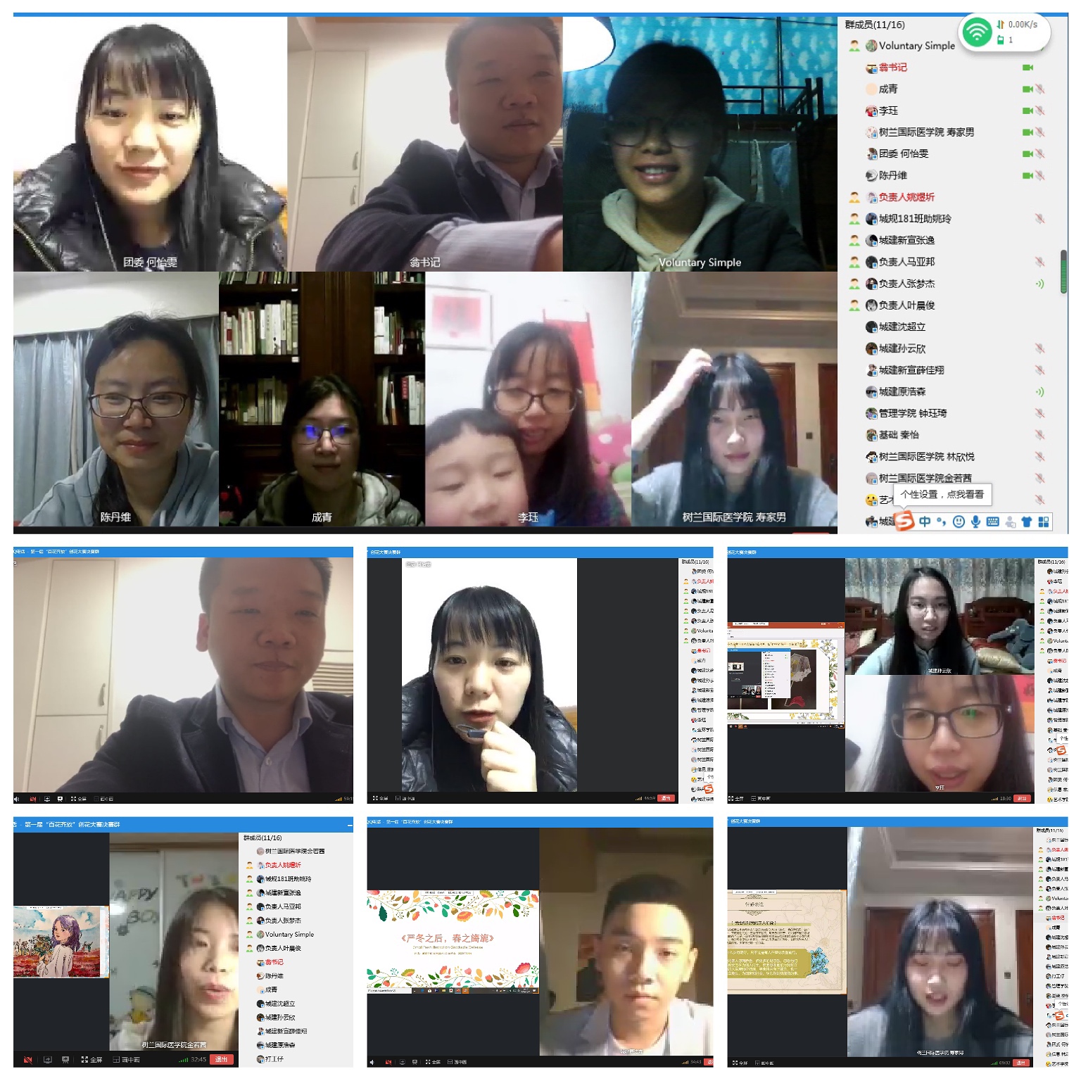在这个特殊的时期,参赛选手巧妙构思,取材丰富,为我们呈现了形式多样、主题鲜明的参赛作品,在QQ群中结合PPT投屏讲述制作灵感、制作过程以及情感依托,更能让人领悟到其中对疫情下所有工作人员的感恩感激之情。两位来自树兰国际医学院金若茜同学的《这束花,送给您》和寿家男同学的《万物复苏,凯旋归来》均以手绘画的形式表达了对身边亲人作为医护人员参与抗疫的思念牵挂之情,又表达了身为医学院学子的浓浓责任感和专业荣誉感。海洋之神590线路检测中心建筑专业孙云欣同学利用环保材料进行裁剪组装,做成一个完整的作品《若初》,既发挥专业技能又增加创新元素。信息学院林咸鑫同学用代码敲打出了花开花落的动画,让人眼前一亮,正所谓“陌上花开,可缓缓归矣”……在场的评委老师对同学们的作品给予高度肯定和赞扬,我们同学的作品真正呈现出“有新意、有造型、有内涵、有水平”,有的形神兼备,有的寄情于景,还有的以景动人,让人看了有身临其境之感。