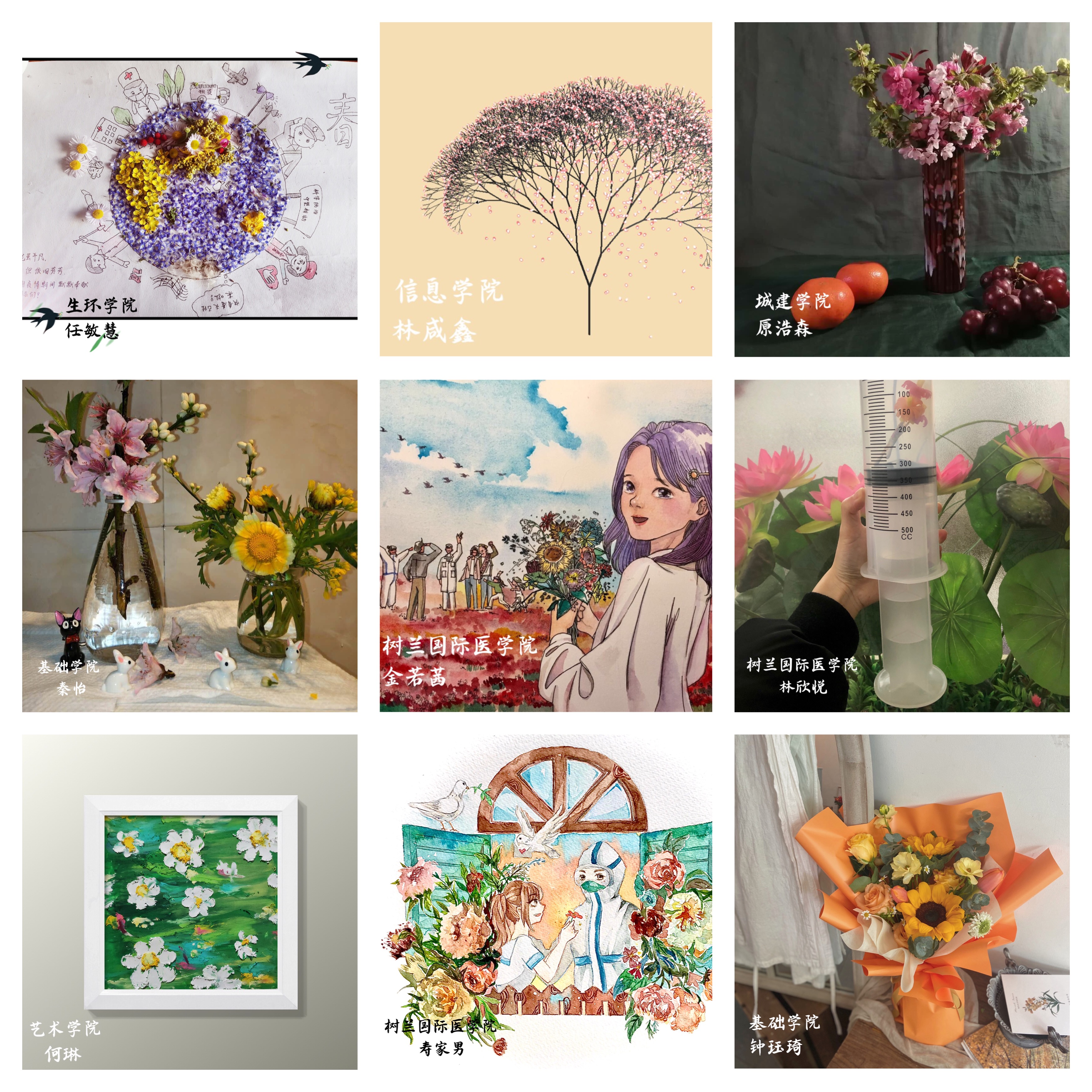 “春风咏赞,百花献礼”,树大学子以“艺”抗“疫”,用作品传递真情,用艺术表达祝愿。残冬已过,这个春天,让我们携手共度!