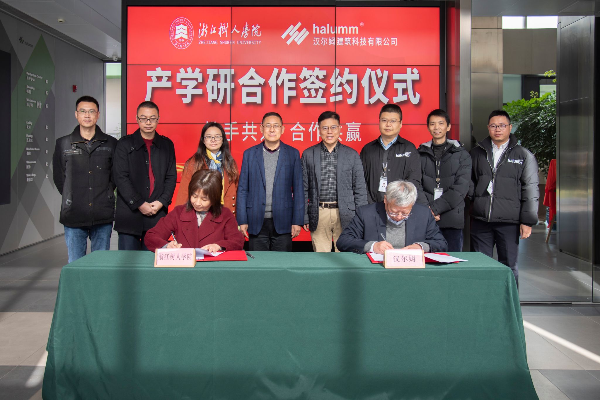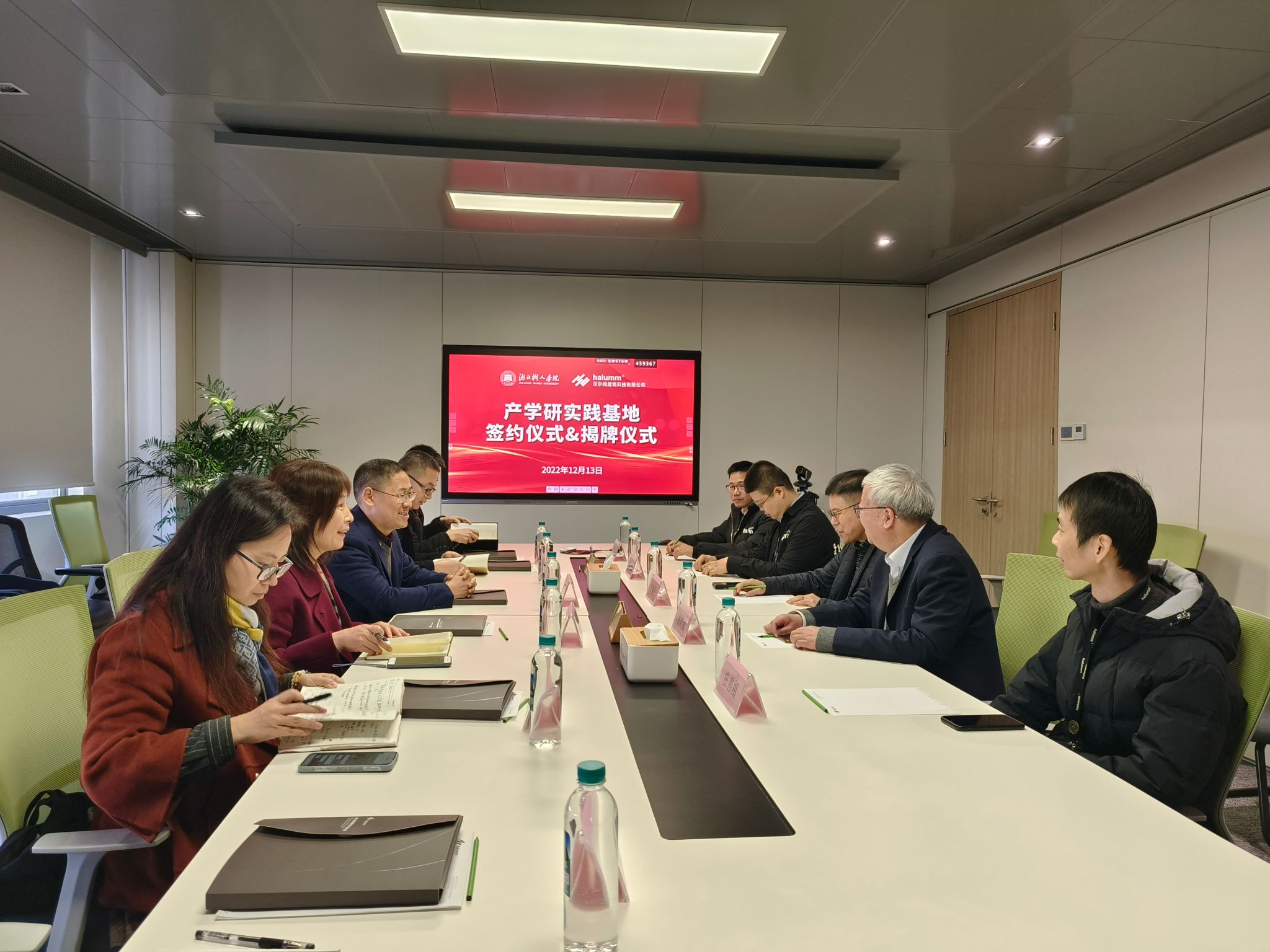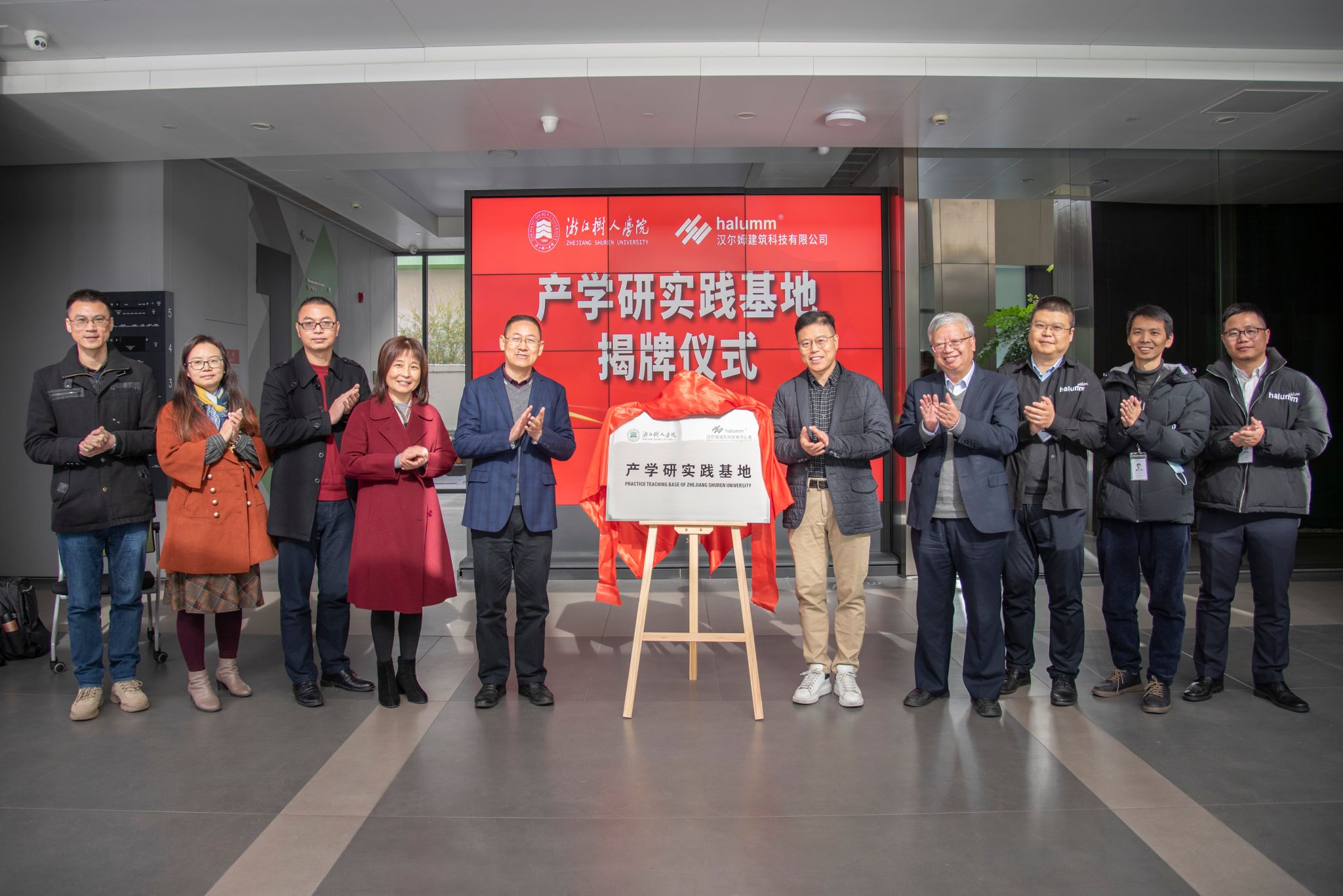 王晓冬作总结发言。他指出,汉尔姆作为首批浙江省“专精特新”企业,始终秉承“为人类提供舒适、健康、安全、环保的生活环境”的使命,多年来一直致力于新型建筑工业化装配式绿色低碳建筑整体集成解决方案的创新研发与推广应用,先后承担完成了G20峰会、杭州市民中心、杭州市中医院丁桥院区等不同应用场景的项目,其模块化组装、全场景应用的产品特色,有利于实现对建筑全生命周期的精确管理。他表示,汉尔姆注重产业应用和产业实践的企业定位与公司应用型人才培养目标不谋而合,此次签约揭牌是深化双方合作、实现共同发展的新起点。他希望双方以目标为导向,通过产学研合作相互借力发力,进一步探索深化合作路径和突破点,打造全方位的“产学研用”合作全链条,实现专业、产业相互促进、共同成长。