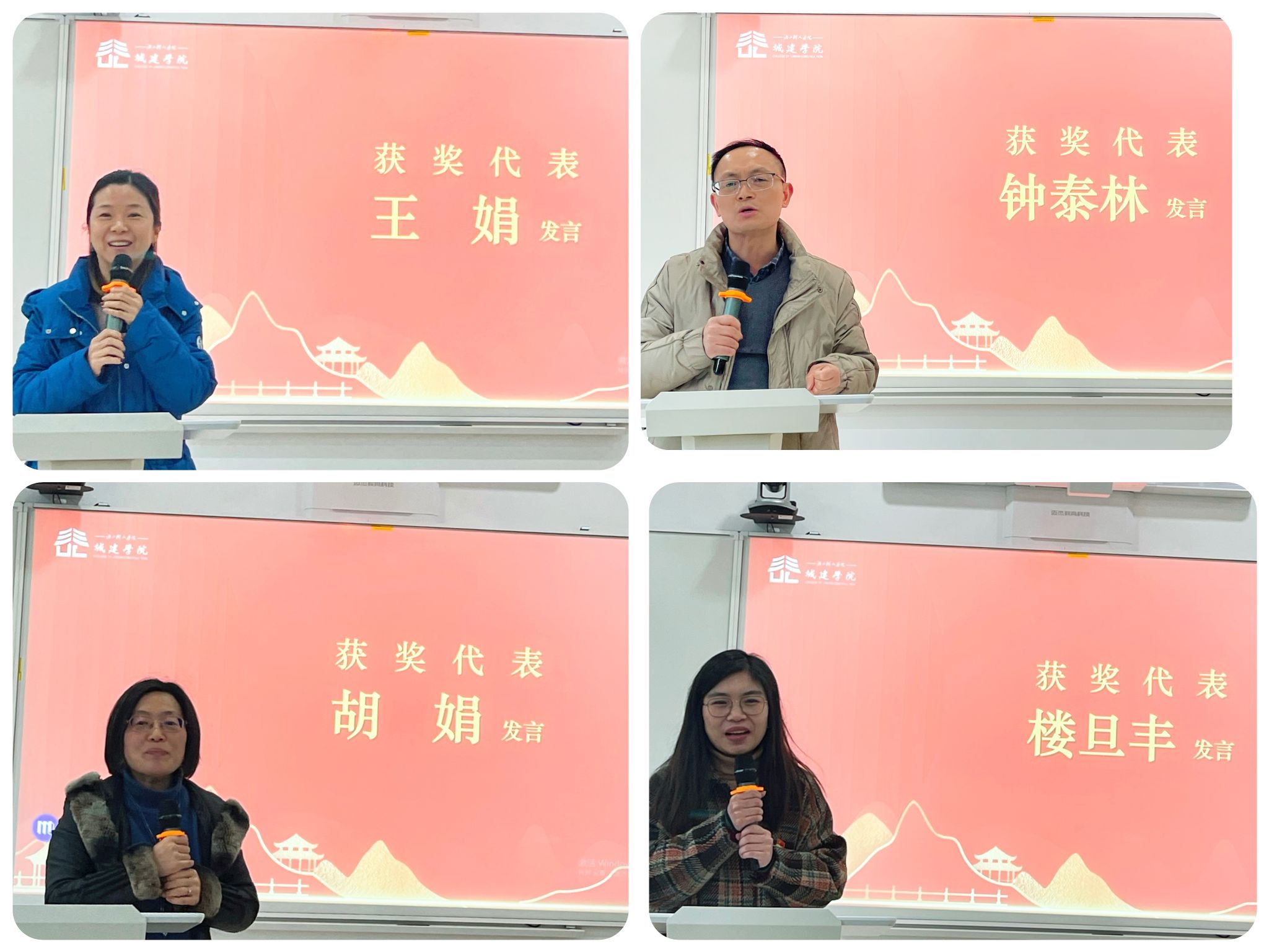 获奖教师代表王娟、钟泰林、楼旦丰、胡娟等四位教师进行了表态发言,通过表彰先进、树立典型,进一步激发了全体教工干事创业的热情与担当。