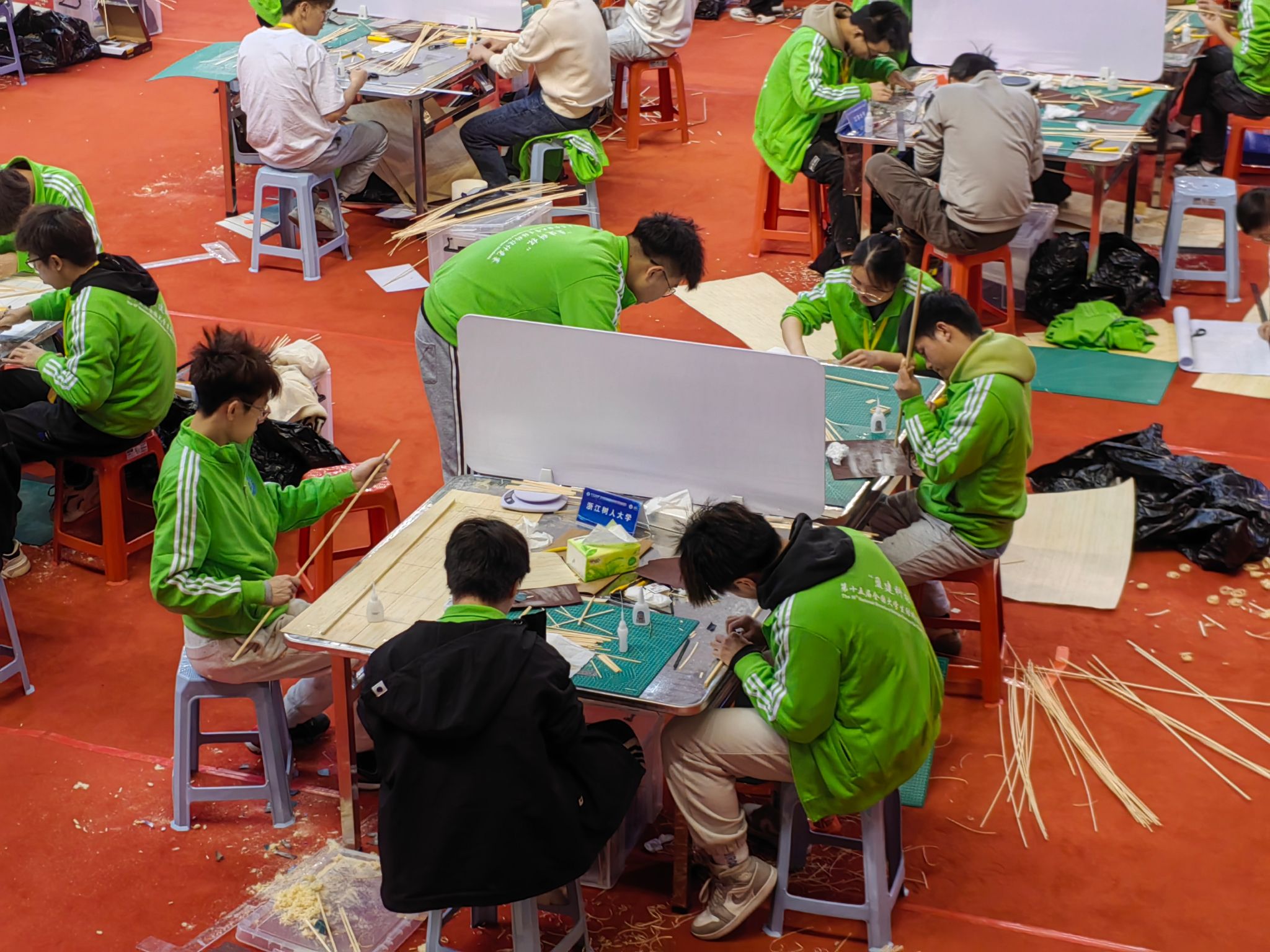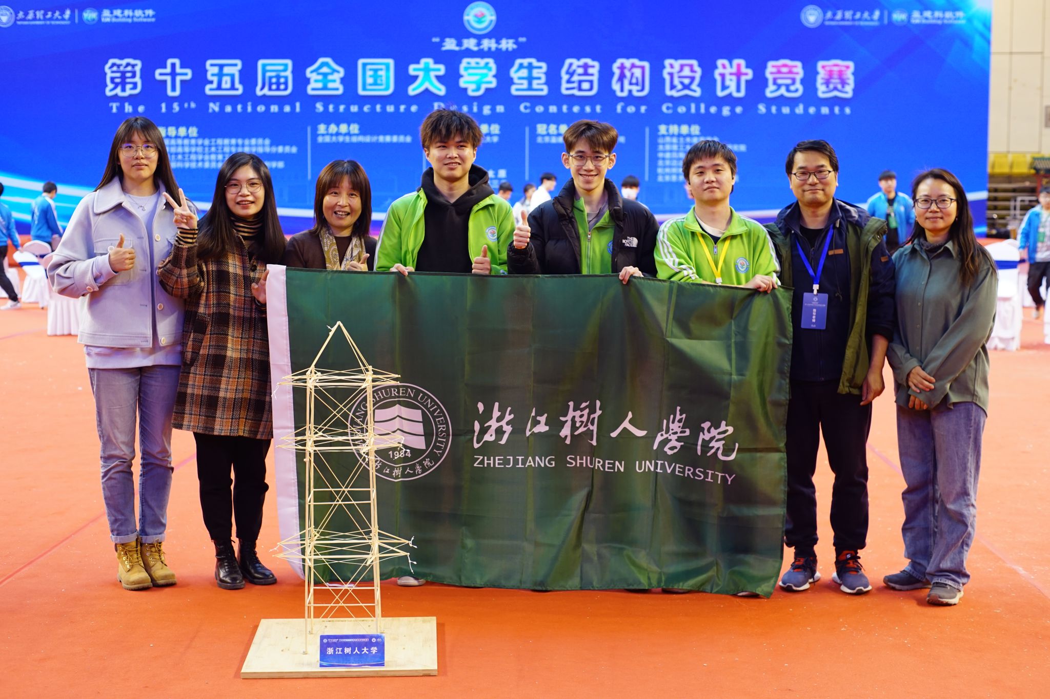 本次比赛由常务副经理金小群和副经理陈丹维带队出征,在指导老师沈骅和楼旦丰的倾力指导下,金彬、叶卓琛、徐文龙三位城建学子团结拼搏,历时16个小时现场制作后的“阳光之塔”最终承受住了三次满载而位列前茅。
