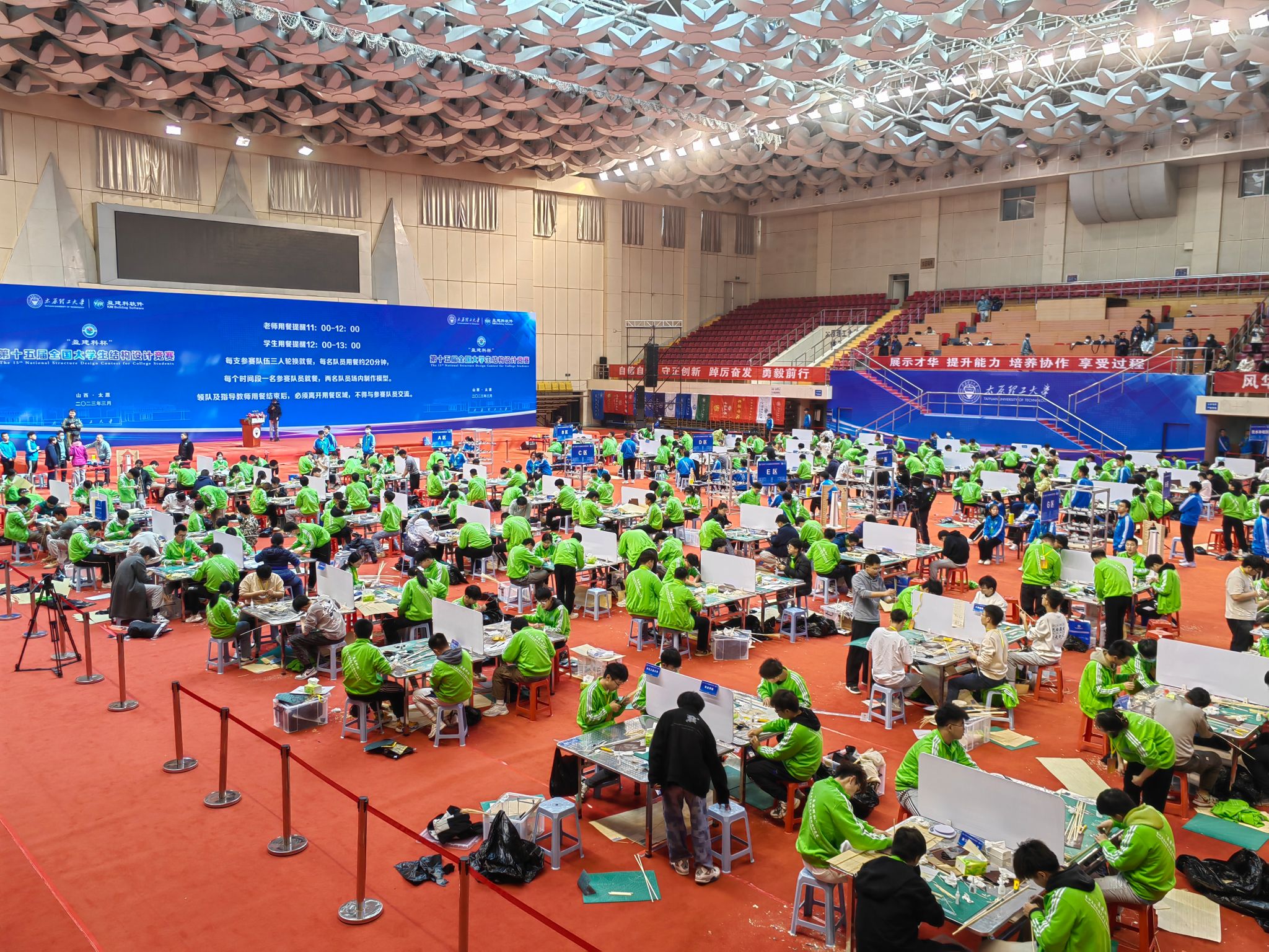3月22日-26日,“盈建科杯”第十五届全国老员工结构设计竞赛在山西太原理工大学隆重举行。来自全国110所高校的111支队伍,近700名师生齐聚一堂。