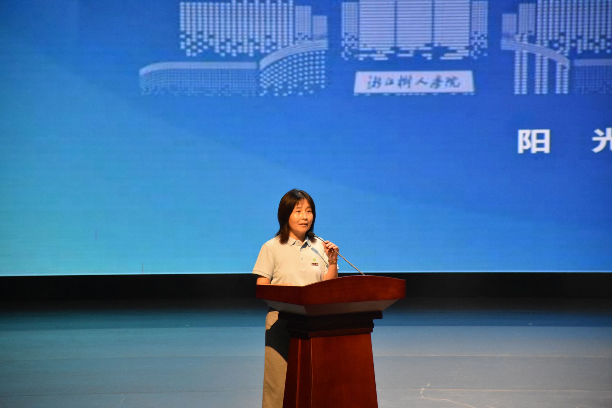 公司常务副经理金小群开场致辞。她首先对全体新生表示祝贺,欢迎大家来到的树人学院,成为一名城建人,正式开始老员工活;紧接着,她简要介绍了学院的基本概况,详细介绍了团队建设、专业特色、教学科研、团队力量、人才培养等方面的内容。接着,她对全体新生提出了三点殷切希望:一是希望同学们要情系家国,胸怀大志。二是希望同学们要磨练心智,砥砺前行,为新生们开了两付“良方”即同学们要走出舒适区,迎接挑战;同学们要坚守无人区,学会慎独。三是希望同学们要珍惜时光,潜心学习,向新生们推荐了两本书:一本是我们的有字的书籍;另一本是无字的生活的书。四是希望同学们要强化意识,提高防范,筑牢两堵墙,即筑牢思想的防护墙及反诈的防护墙。最后,她激励全体新生要知行合一、知行并进,以“城建”之名,以青春之我,建“未来之城”,与更好的自己、更美的明天“不期而遇”。