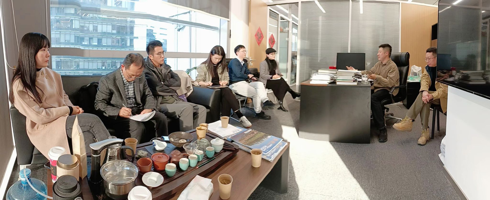 杭州格境建筑景观设计股份有限公司副总经理许立南、智境工程板块部门负责人李永斌对学院一行的到来表示热烈欢迎,并介绍了公司的基本情况、主营业务以及近年来优秀项目成果等。钟泰林教授及赵竑绯老师分别就学校及学院的基本情况、风景园林专业人才培养与教学课程体系等内容向企业进行了详细介绍。