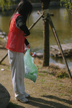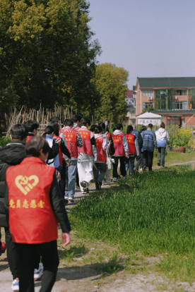 第二阶段,志愿者们前往了水美乡村蒲荡夏村,并开展净滩实践治水活动,通过清理河边及河道垃圾,使他们对保护河道环境有了更深的认识。同时也看到了在乡村振兴的建设下,蒲荡夏村通过建设牛头湖及其他旅游产业,不断深化水生态效益价值转化,为乡村振兴注入新的动能。