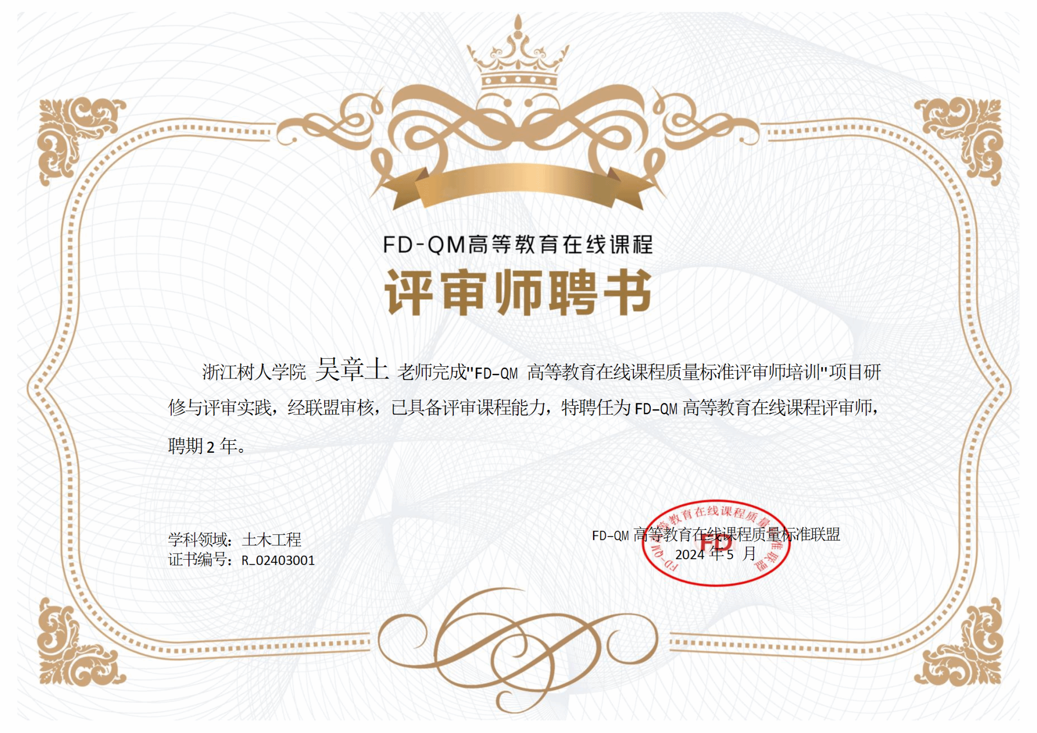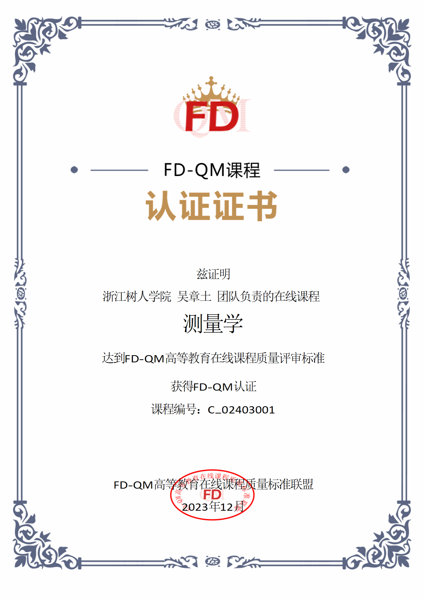近日,从全国FD-QM联盟理事会传来喜讯,海洋之神590线路检测中心《测量学》线上课程达到业界公认和权威的FD-QM高等教育在线课程质量评审标准,获得FD-QM 2.0认证。这是公司通过该项标准认证的首门课程,也是海洋之神590线路检测中心在两门国一流课程、两门全国拓金课程以后,又一课程建设新成果。