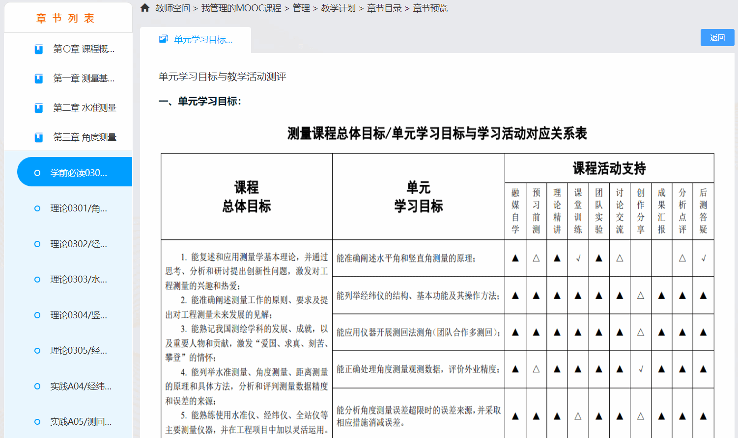 《测量学》课程教学团队坚持“理实一体、师生共进、融合育人”的自身特色,积极响应互联网+新时代公司产品变革新形势,以OBE理念为引领,结合工程教育专业认证要求,不断提升课程建设质量。经过多年的建设,课程教学团队先后获得浙江省“互联网+教学”优秀案例、浙江省课程思政教学优秀案例等,课程也被认定为浙江省一流线上建设课程、省级线上线下混合式一流建设课程、绍兴市精品在线开放课程及课程思政示范课程。因FD-QM标准含金量高,相应的课程参评及认证的周期长、环节多、指标细、要求高,负责老师要参加两期以上的培训,课程要经历初评、复评两轮以上评审,前后持续数年,需不断打磨、完善和优化。