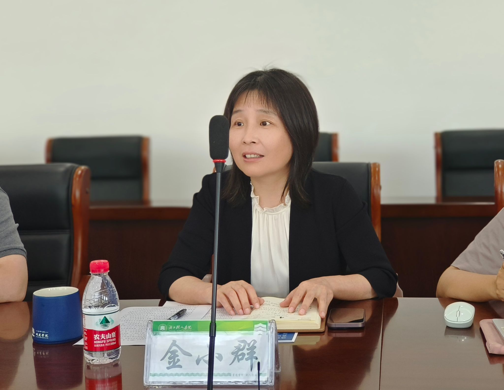 金小群对曹伟一行的来访表示热烈的欢迎。她详细介绍了学校和学院的发展历程、专业设置、团队力量等基本情况,并从学科科研、公司产品、人才培养、产教融合等方面分享了学院近几年所取得的成果。她强调,建筑行业正经历由增量建设向存量提质的转变,高校作为人才培养的重要基地,必须主动拥抱行业变革,积极谋求专业转型升级,以适应新的市场需求。