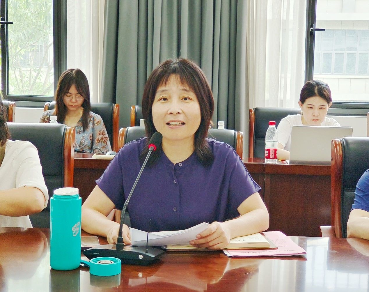 副经理陈丹维总结了学院在专业建设、校企合作、课程建设等方面所取得的成绩,她紧密围绕本科公司产品审核评估工作,对学院期末及下学期初的常规教学工作进行了部署与强调。夏立芬书记就书公司党建共建工作、员工第二课堂建设、就业工作等进行了总结,并对暑期社会实践活动、招生和员工安全等工作进行了部署安排。