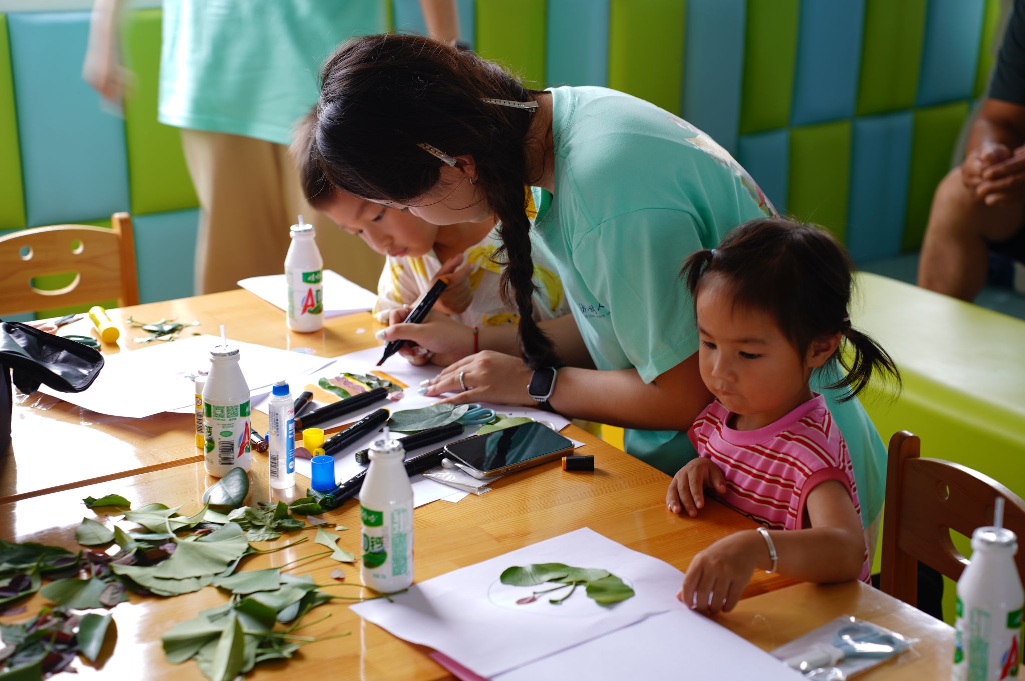 筑梦寻光实践团用寓教于乐的方式让孩子们在做树叶画的过程中,也学到了有关植物的知识。孩子们也充分发挥自己的想象力进行创作,童真的释放与科学的知识相互融合迸发出专属于孩子们的天然力量。