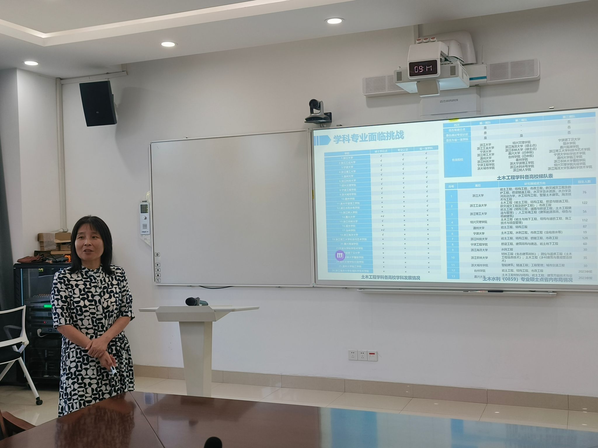会议伊始,金小群着重对 2024 届本科招生录取情况进行了介绍。鉴于新高考改革背景与行业下行的双重影响,学院专业招生工作遭遇严峻形势与挑战。这也使得与会人员深刻认识到学科专业一体化建设的紧迫性与重要性。她深入分析了学院学科专业现状、学科专业一体化建设的必要性,围绕 “城市底色更新”“城市细胞更新”“骨架系统更新”“城市智力更新” 等四大方向,提出了学科专业一体化建设的实施举措。
