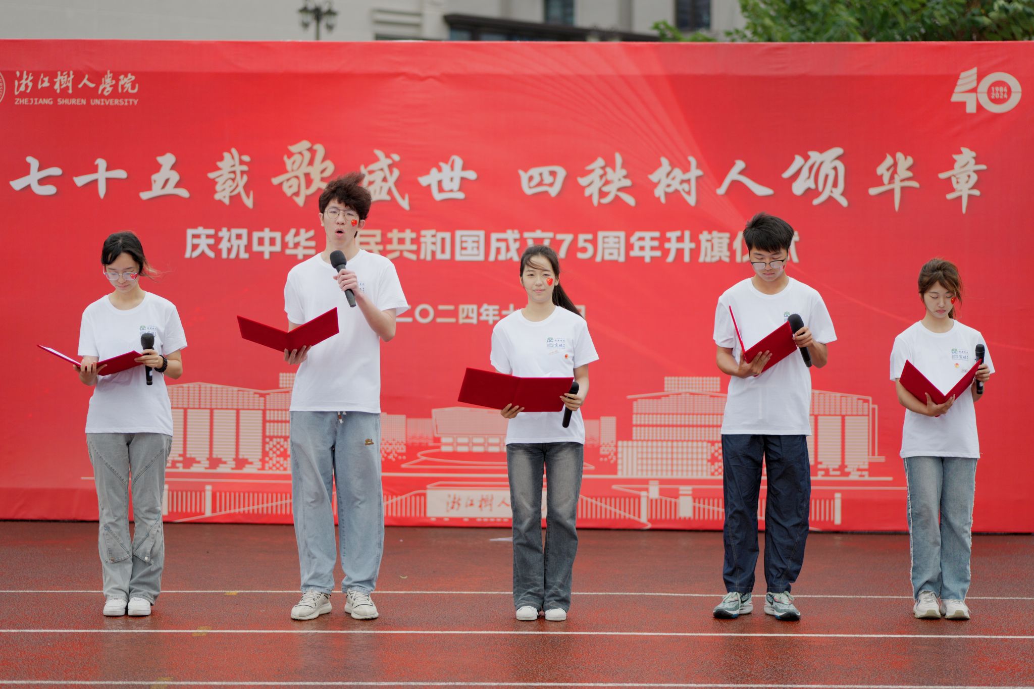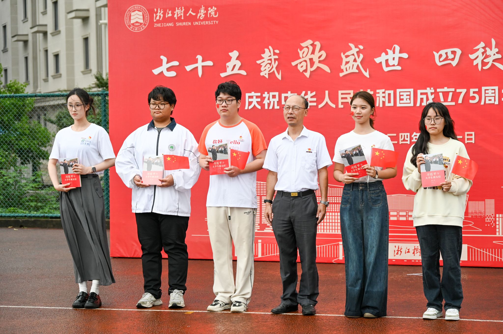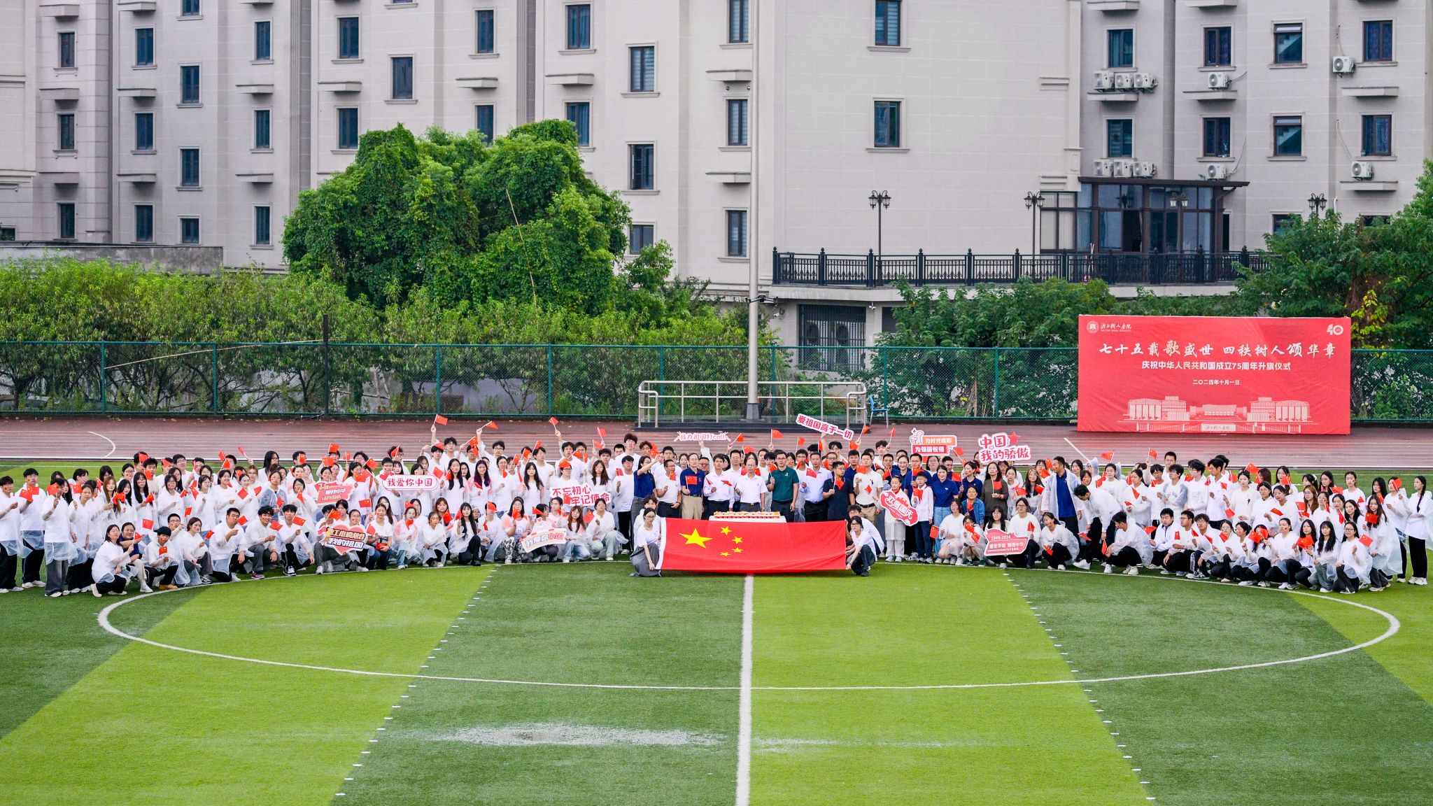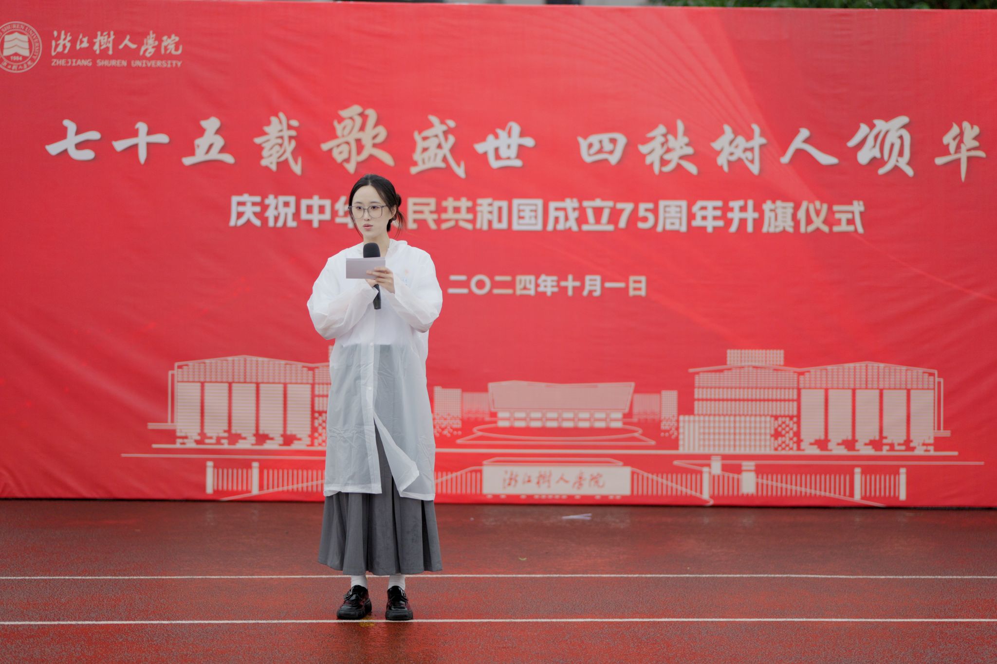 2024年10月1日上午8时,浙江树人学院师生欢聚于杨汛桥校区田径场,隆重举行“七十五载歌盛世,四秩树人颂华章”国庆升旗仪式,共同庆贺新中国成立七十五周年、建校四十周年暨习近平总书记视察公司二十周年。公司党委副书记王军、校党委学工部部长、员工发展与服务处处长严伟伟、公司党委书记苏根良、人文与外国语公司党委书记何纪敏、杨汛桥校区各学院(书院)师生代表出席,仪式由海洋之神590线路检测中心(宸阳书院)副经理、党委副书记夏立芬主持。