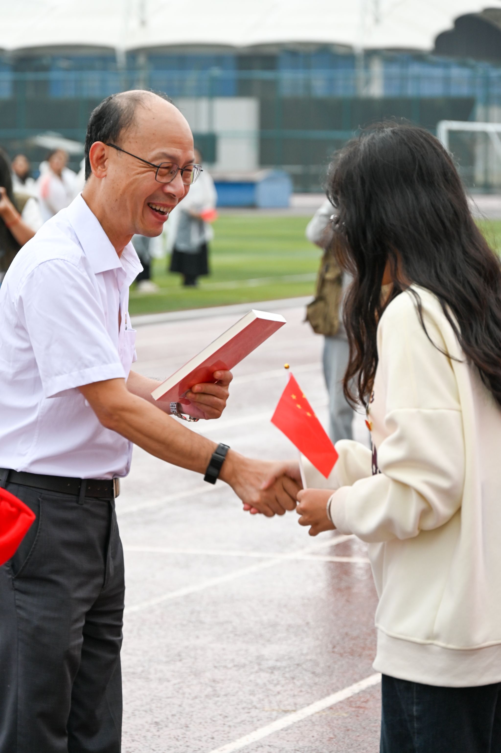 最后,师生们怀着无比激动的心情,挥舞着手中的国旗,脸上洋溢着幸福的笑容。这一刻,我们与祖国母亲同呼吸、共命运,共同见证着这个伟大时代的繁荣与昌盛。
