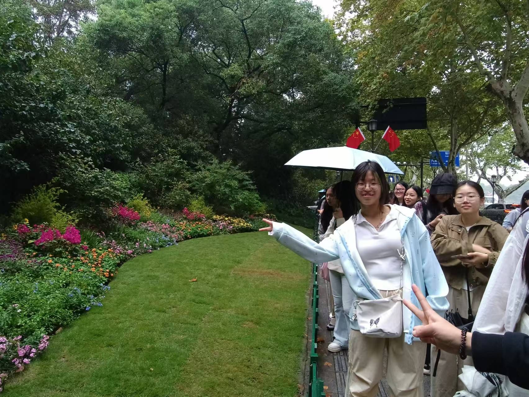 (图3 同学们在杭州市西湖景区北山街欣赏花境)