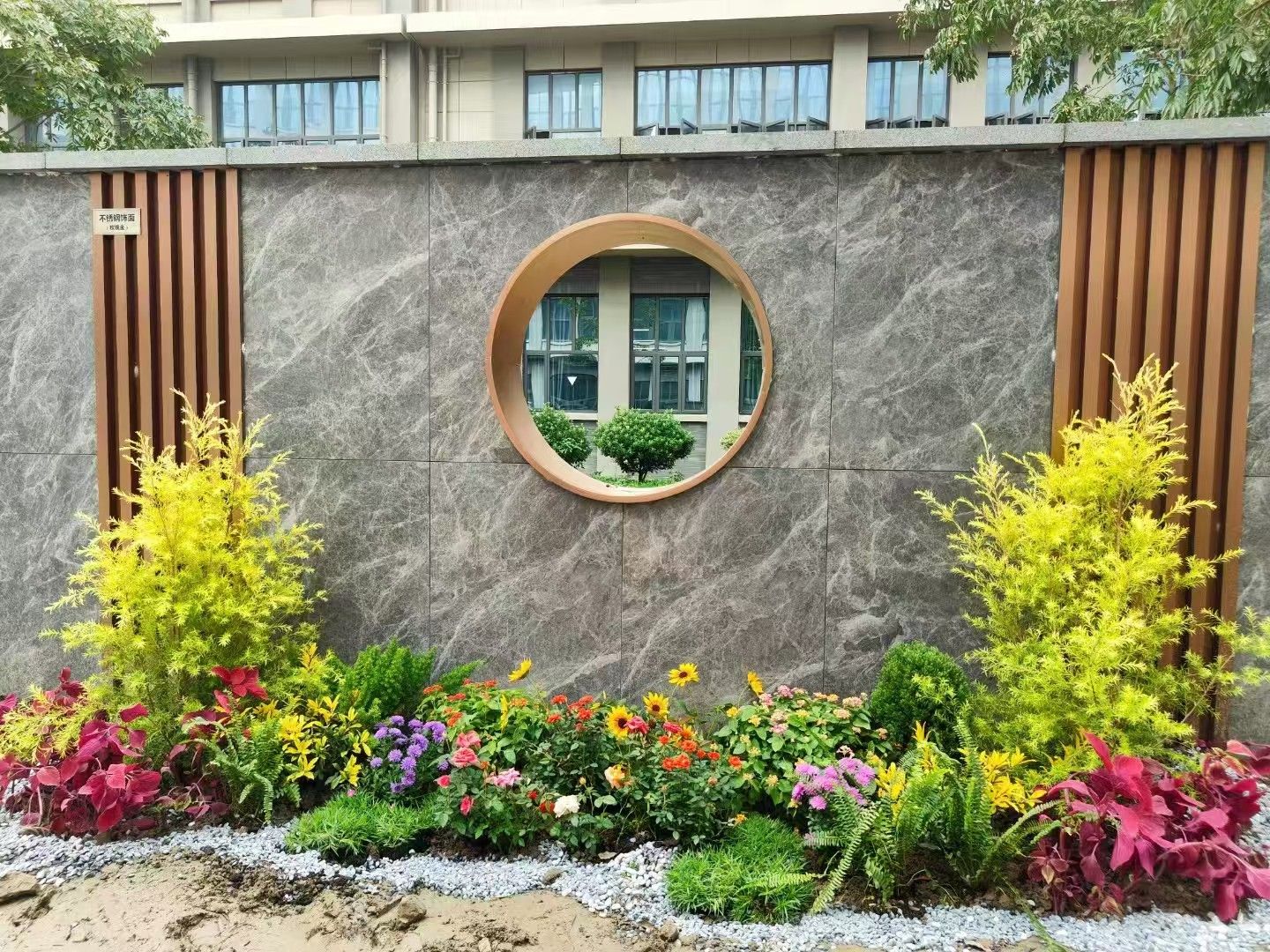 (图8 员工们在学校亲手选材与制作的小花境之一)