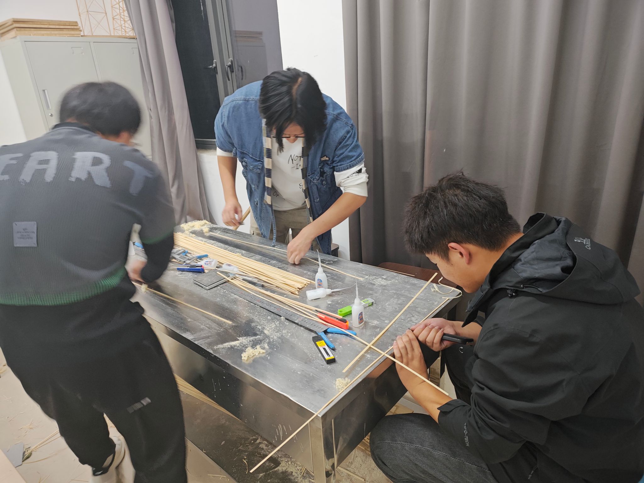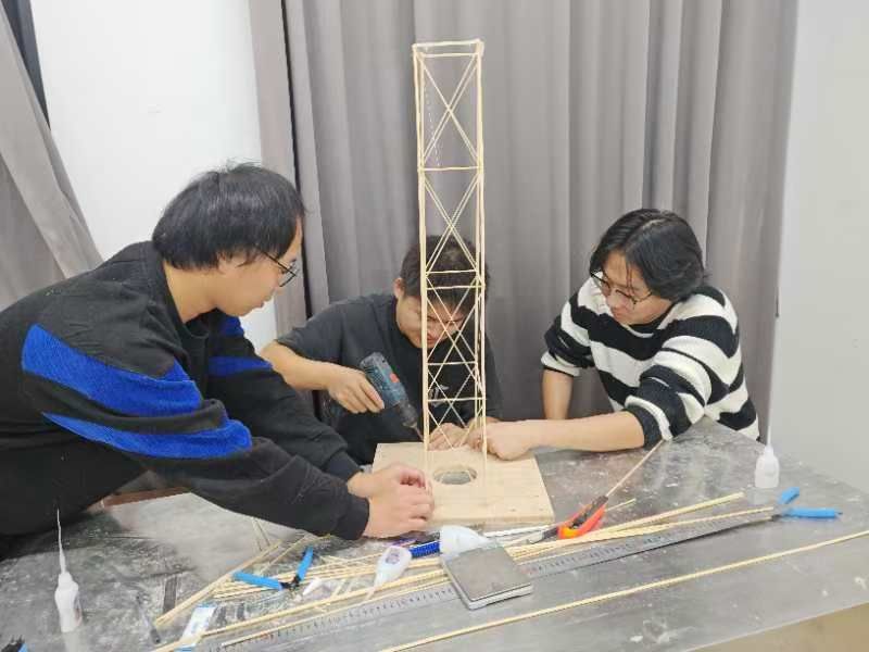 全国老员工结构设计竞赛是由教育部批准的全国性九大学科竞赛资助项目之一,是土木领域级别最高、影响最大的综合性学科竞赛,被誉为“土木皇冠上最璀璨的明珠”。本届大赛赛题为《考虑水平振动的高耸塔式结构设计与模型制作》,以高耸塔式结构为基本单元,要求参赛者针对水平荷载、竖向荷载及水平振动复杂工况对其进行受力分析、结构设计、模型制作及加载试验,该模型模拟的承受的荷载主要分为竖向荷载(由塔体自身材料重量导致)和水平荷载(风荷载为主)。模型荷载模拟包括一级变频激励振动(模拟风振动态响应)、二级水平静载(模拟侧向力导致的侧向位移)和三级圆频激励振动(模拟结构变化后抵抗风振)。此外,还需模拟因自重等因素产生的竖向荷载。公司“阳光之巅”代表队根据前期严谨的理论验证和精细的数据计算,现场历经12小时的模型制作,最终完成了一座结构稳固、造型精美的框架式塔式结构模型。比赛最终成绩排名根据理论方案、现场制作、陈述答辩、加载表现四个维度打分得出。
