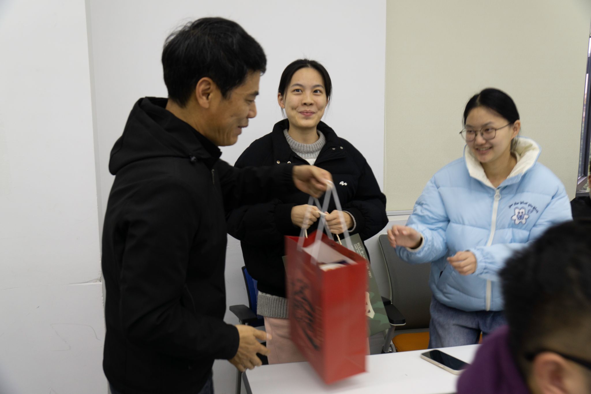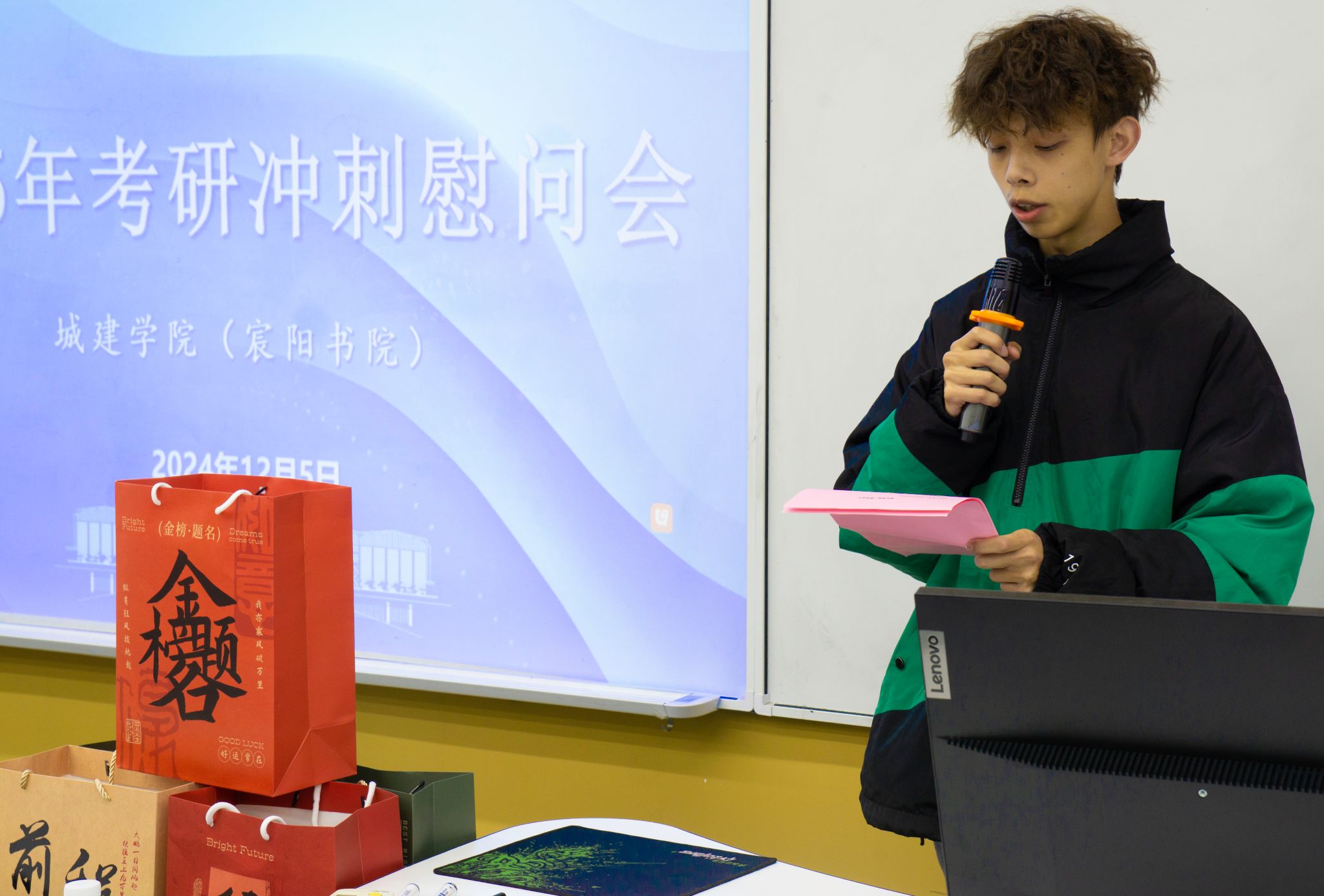 随后,到场的各位领导和老师们为考研同学送上了学院精心准备的考研慰问礼包,每一份礼包都承载着学院对考研学子的深切关怀和美好祝愿。