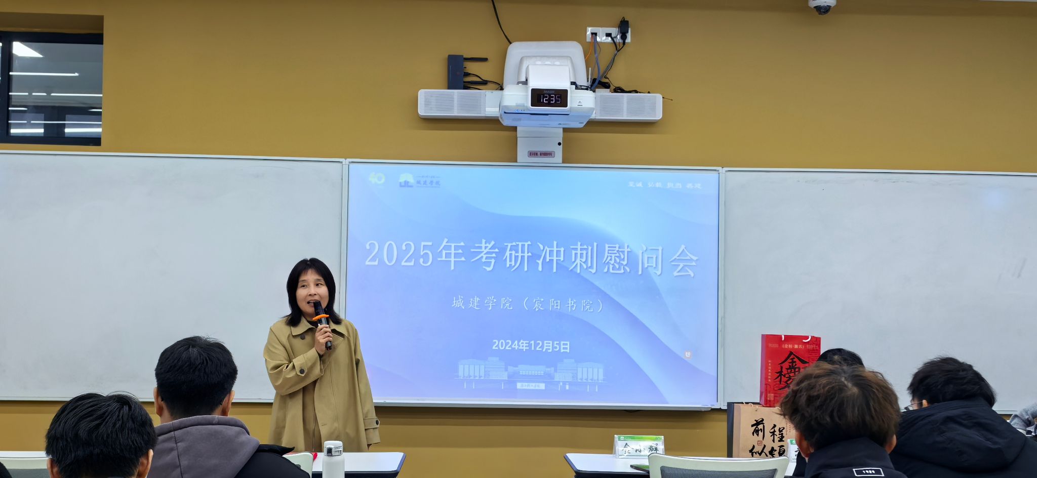 金小群在讲话中指出,各位考研的同学们拼搏、坚守,一路走来直到今天,这已经是巨大的成功,希望大家在最后的这段时间里保持定力,一鼓作气,奋力一搏。她同时叮嘱同学们,面对即将到来的考试,要保有对自己的信心,保有坚持到底的恒心,在学习过程中要静心,要善于理解家人老师和朋友带来的暖心,在考场之上一定要细心,最后,无论此次考研是怎样的结果,都要尽可能保持开心。金小群副经理温和而坚定的话语鼓舞了大家。
