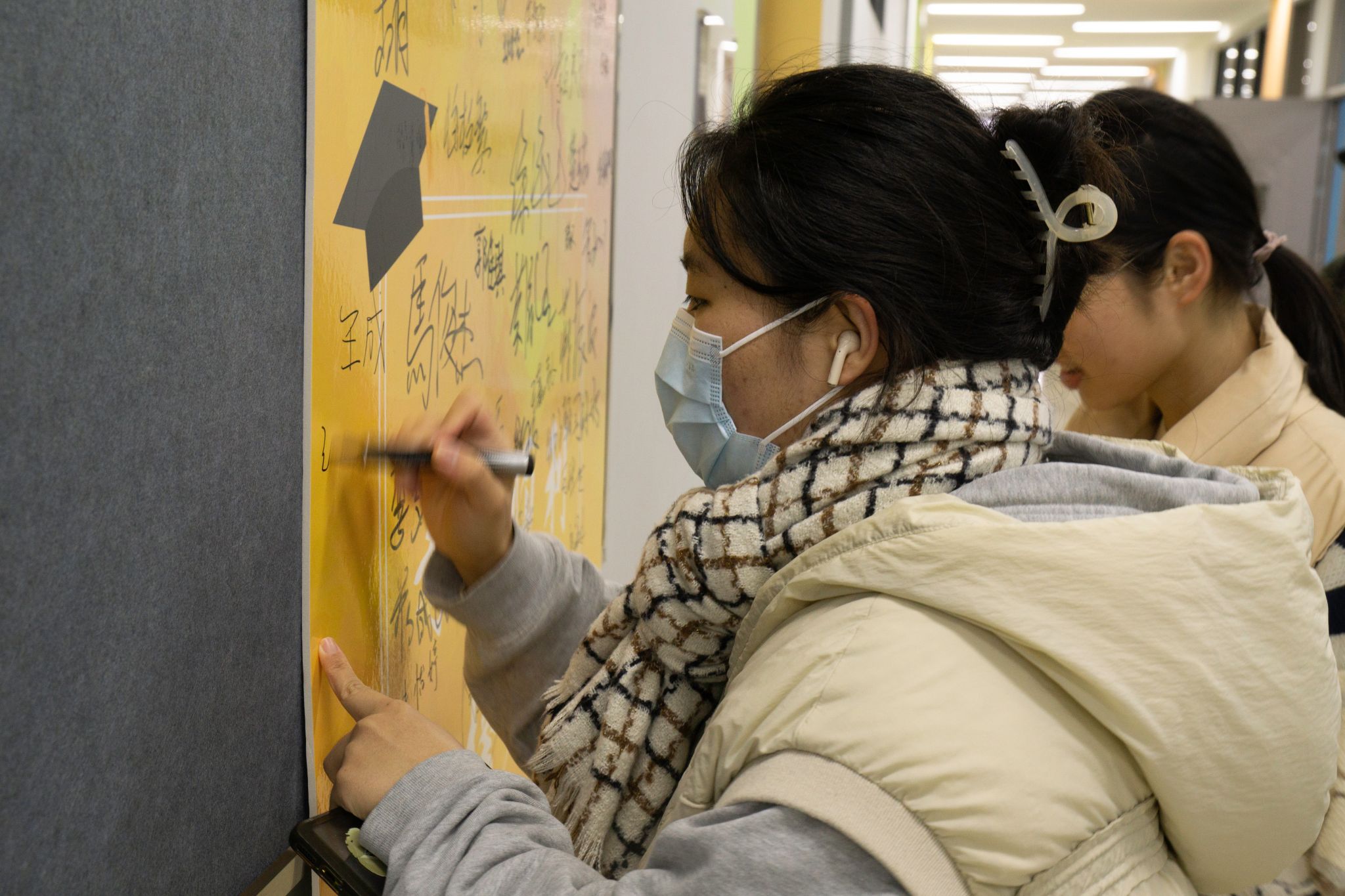 活动伊始,考研学子们在心愿墙上郑重写下自己的名字和对考试的美好期待祝愿,一笔一划间透露着他们坚定的信念和不懈的追求。